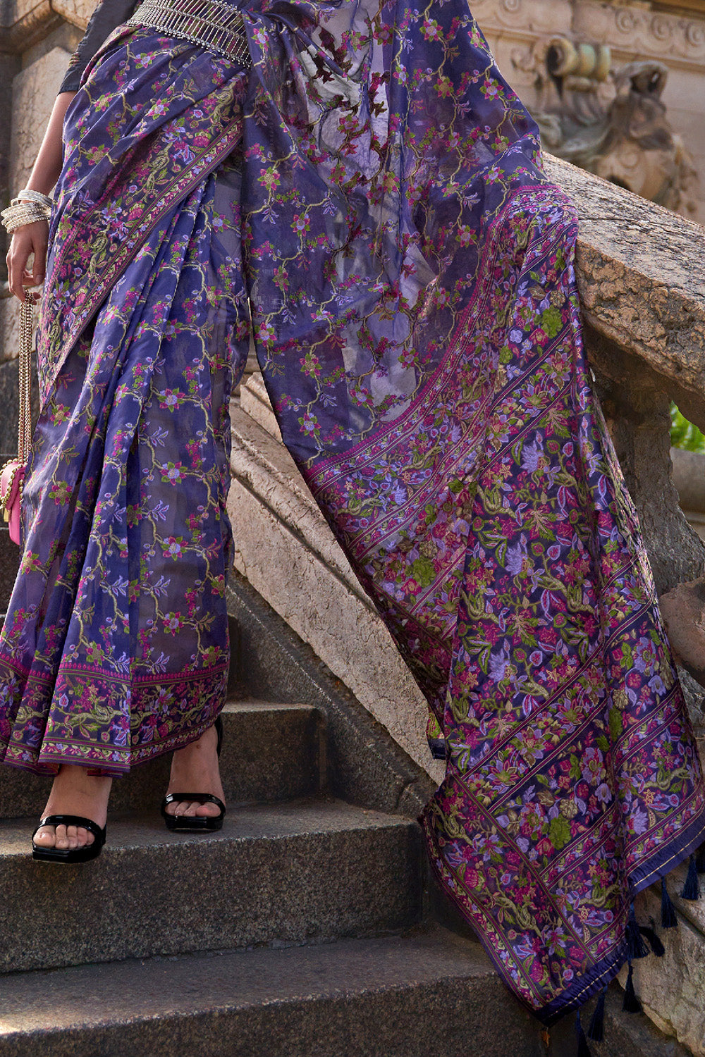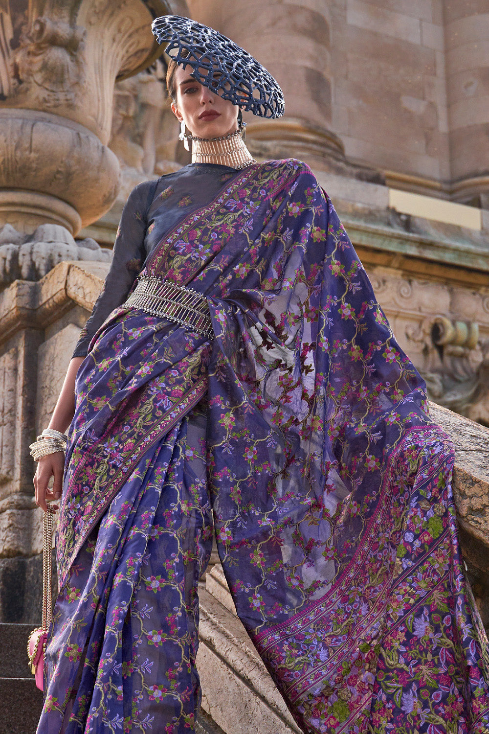 Leavender Organza Parsi Sarees With Lilac Blouse