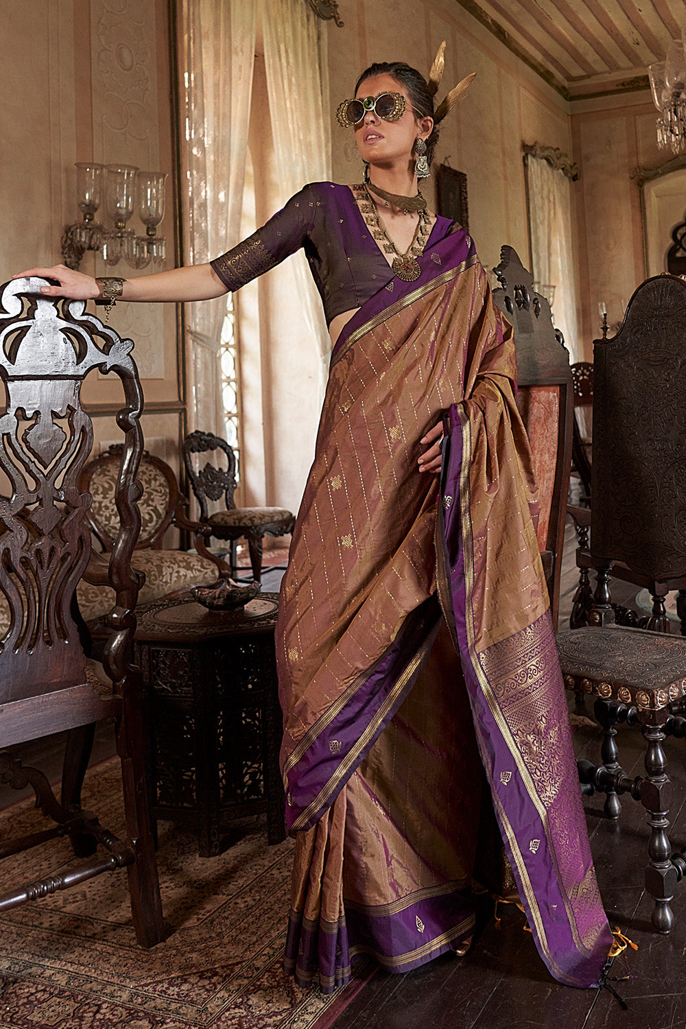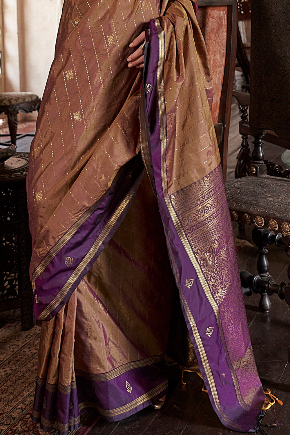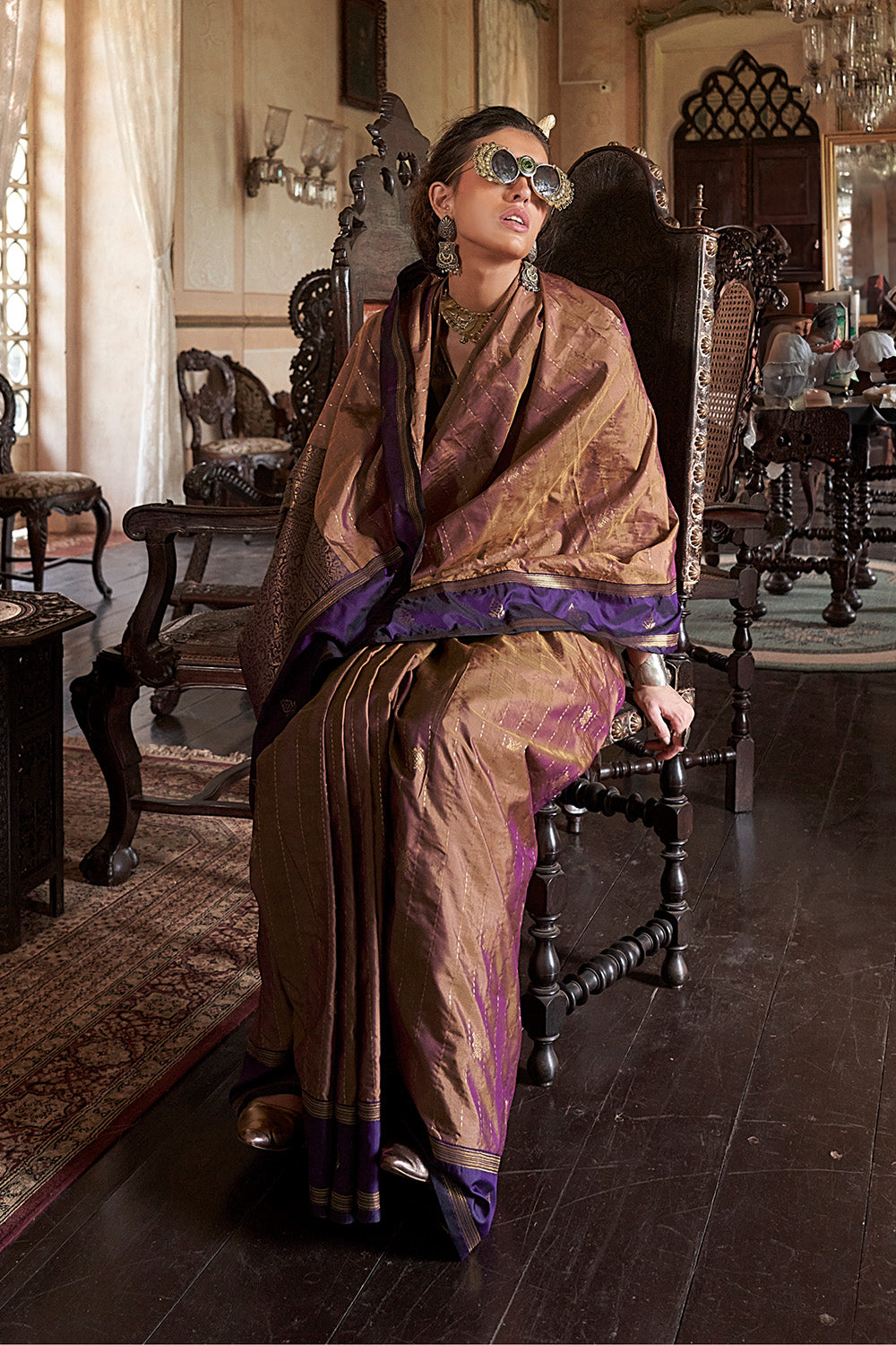 This Light Brown Leheriya Stripes Saree, paired with a matching blouse, elegantly showcases the traditional Leheriya pattern with subtle striped detailing in warm light brown tones. The lightweight fabric offers a smooth drape and comfortable wear, making it ideal for cultural events and festive occasions. Combining timeless craftsmanship with understated sophistication, this saree delivers a graceful and refined ethnic style.