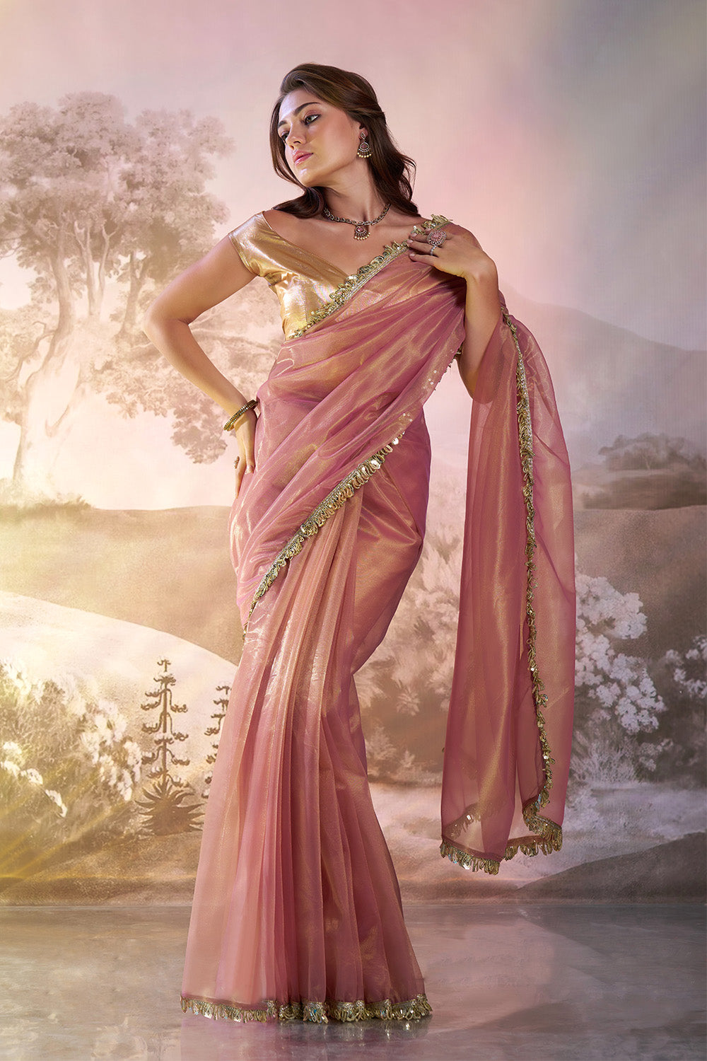 This light peach net saree comes with delicate lace details and an unstitched blouse for a customizable fit. The lightweight fabric allows for comfortable and breathable wear, perfect for any special occasion. Enhance your elegance and style with this beautiful saree.