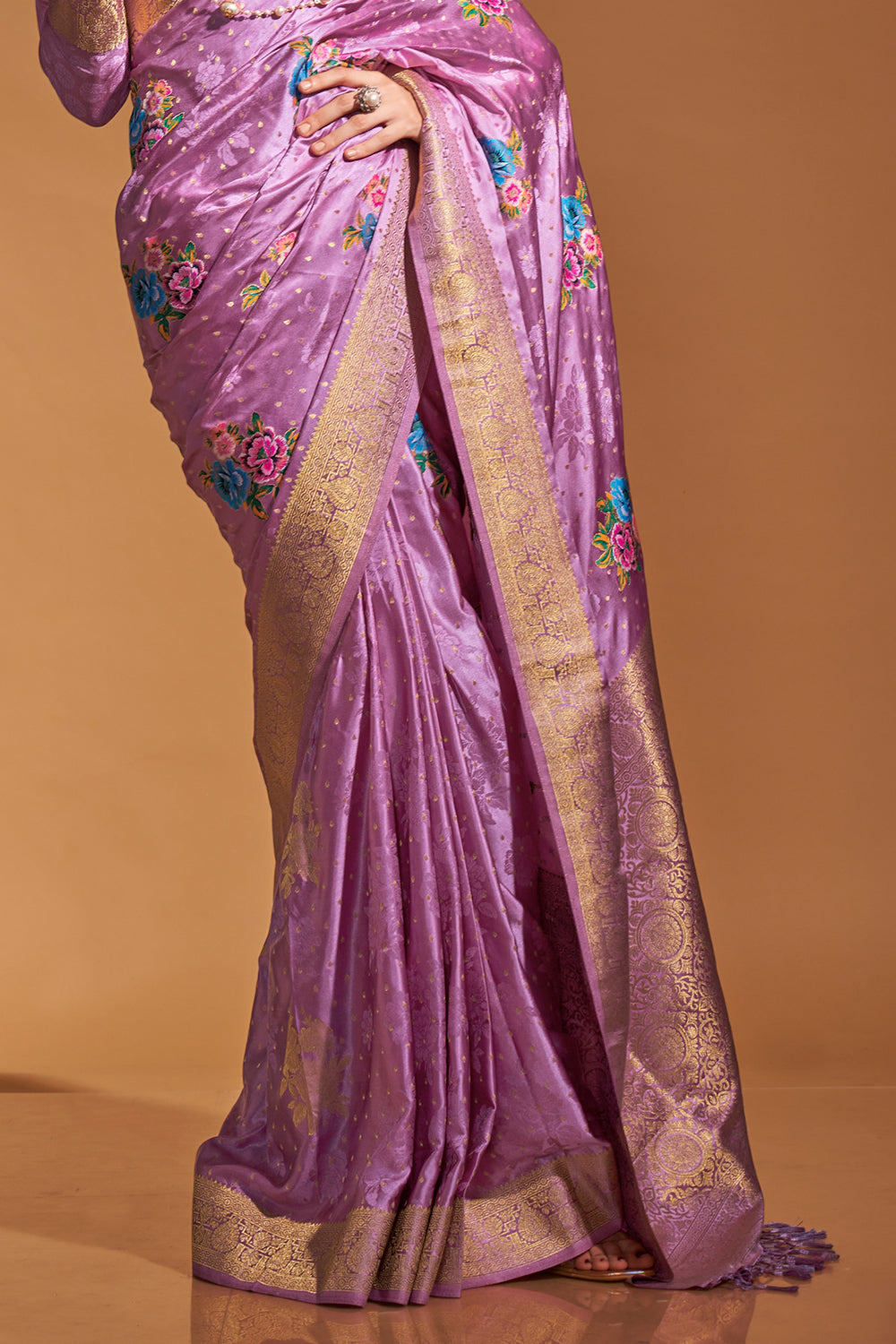 This light pink satin multicolor flower print saree is a beautiful combination of elegance and vibrant colors. Made with carefully selected materials, it offers a unique blend of comfort and style. Complete with a matching blouse, it is the perfect choice for any occasion.