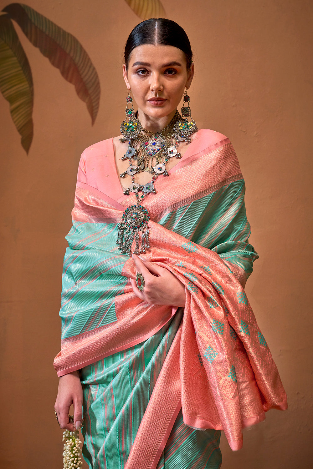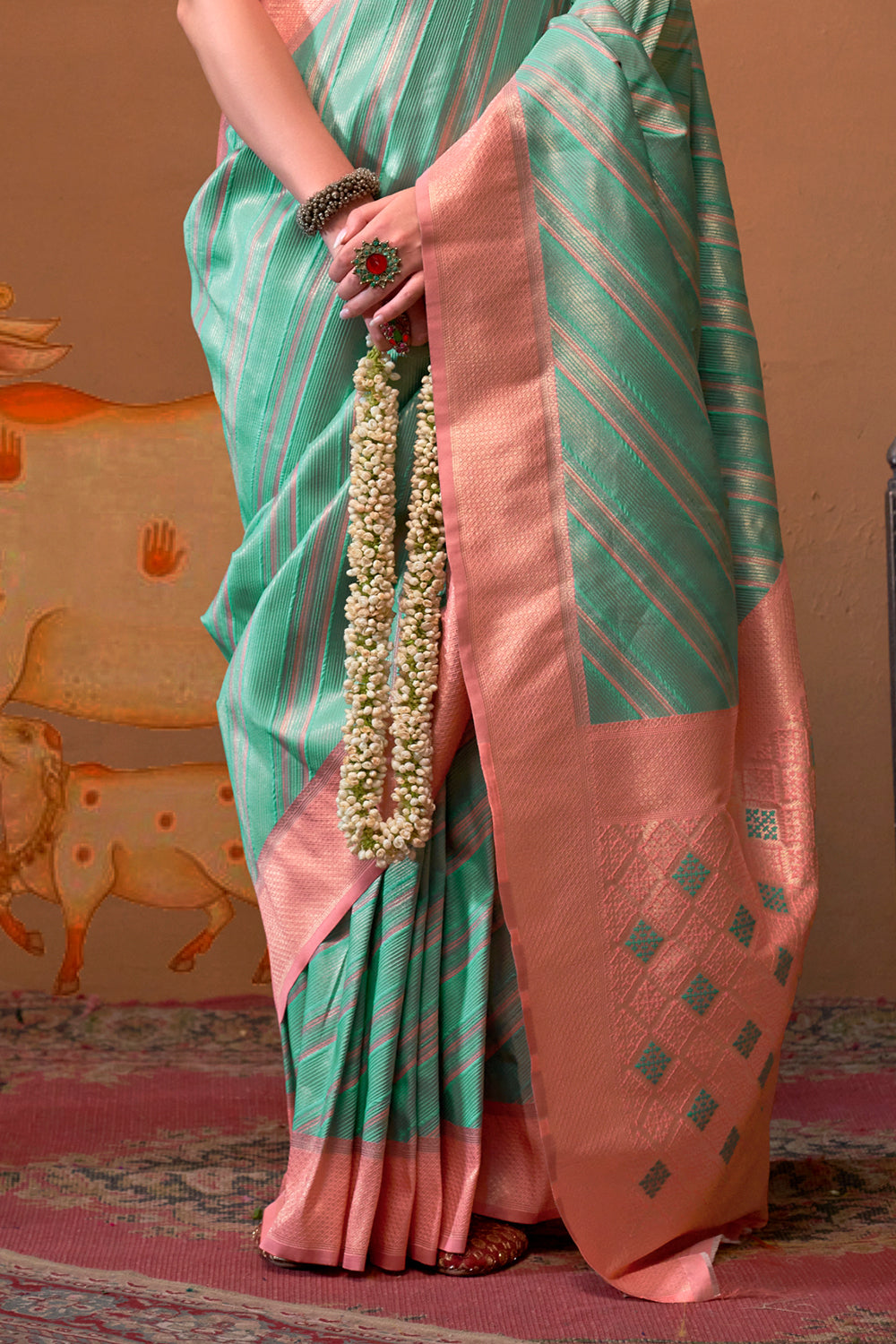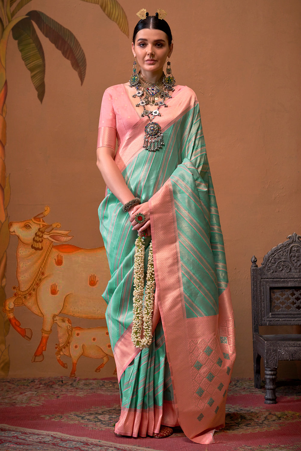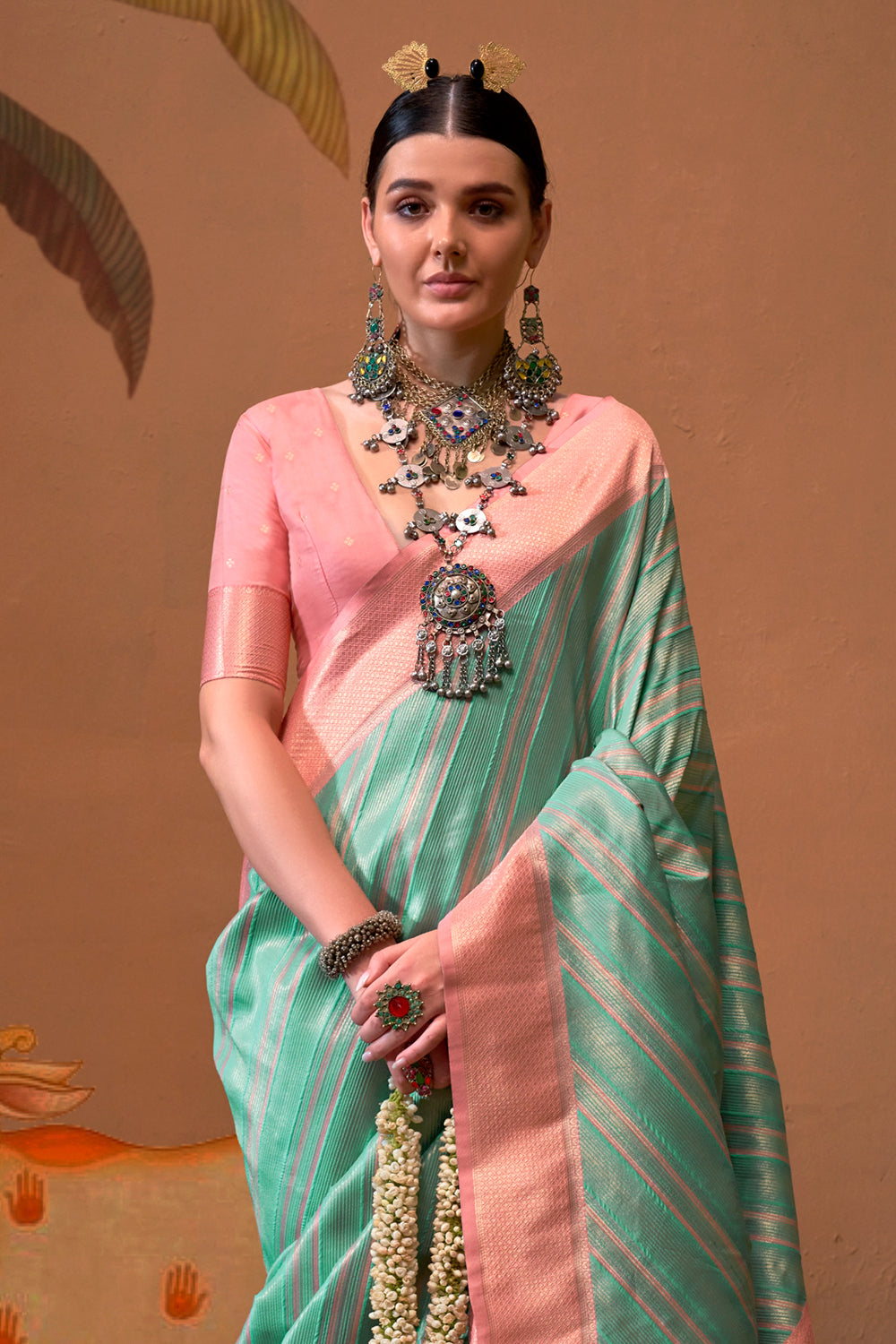 Introducing our multi color striped woven saree with pink blouse - a stunning piece of traditional indian attire. Made of high-quality fabric, this saree features a unique multi-color striped design that is both eye-catching and elegant. Paired with a beautiful pink blouse, this saree is perfect for any occasion. Upgrade your wardrobe with this must-have piece today!.