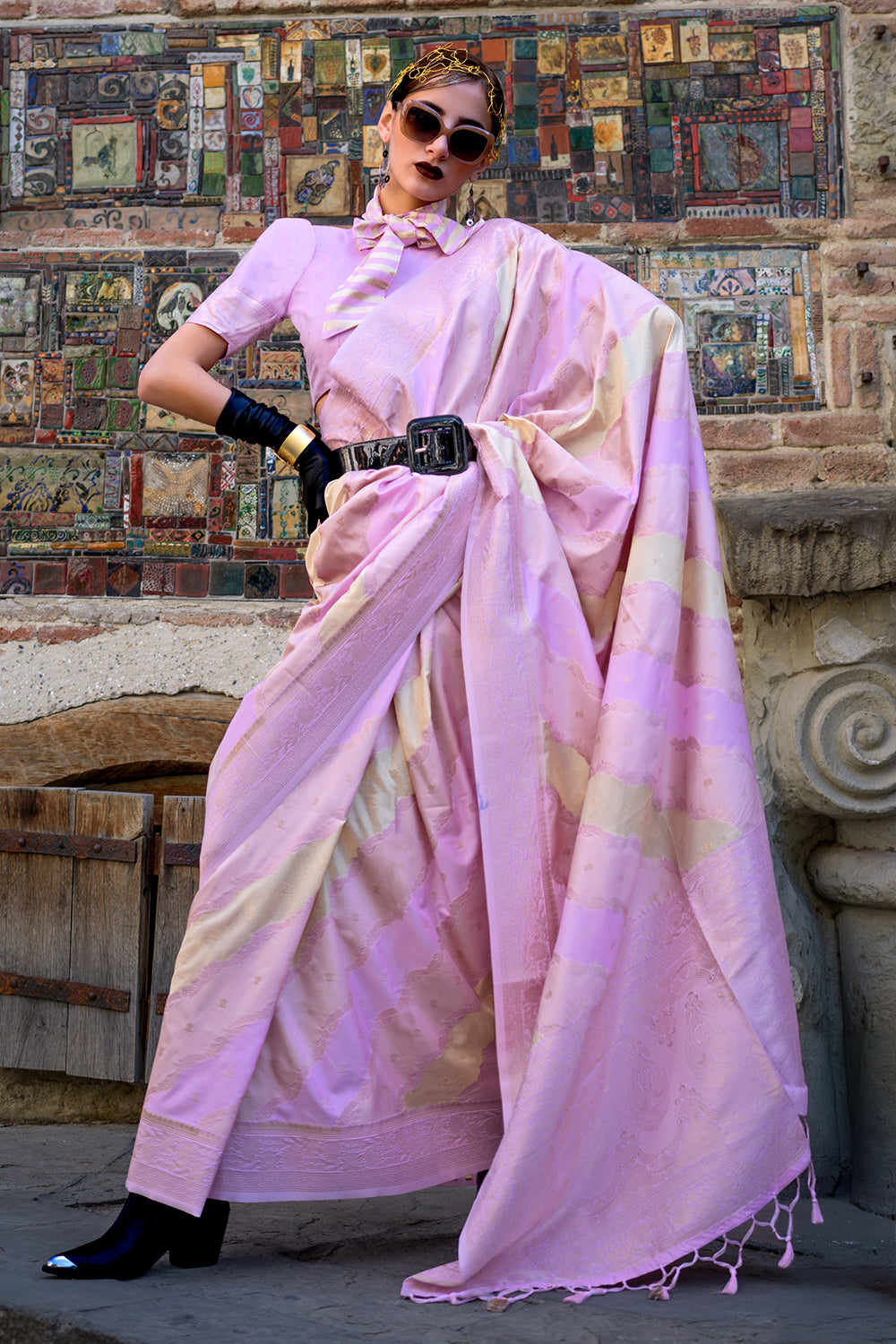 Multicolor Rangkaat Katan Saree With Lilac Blouse
