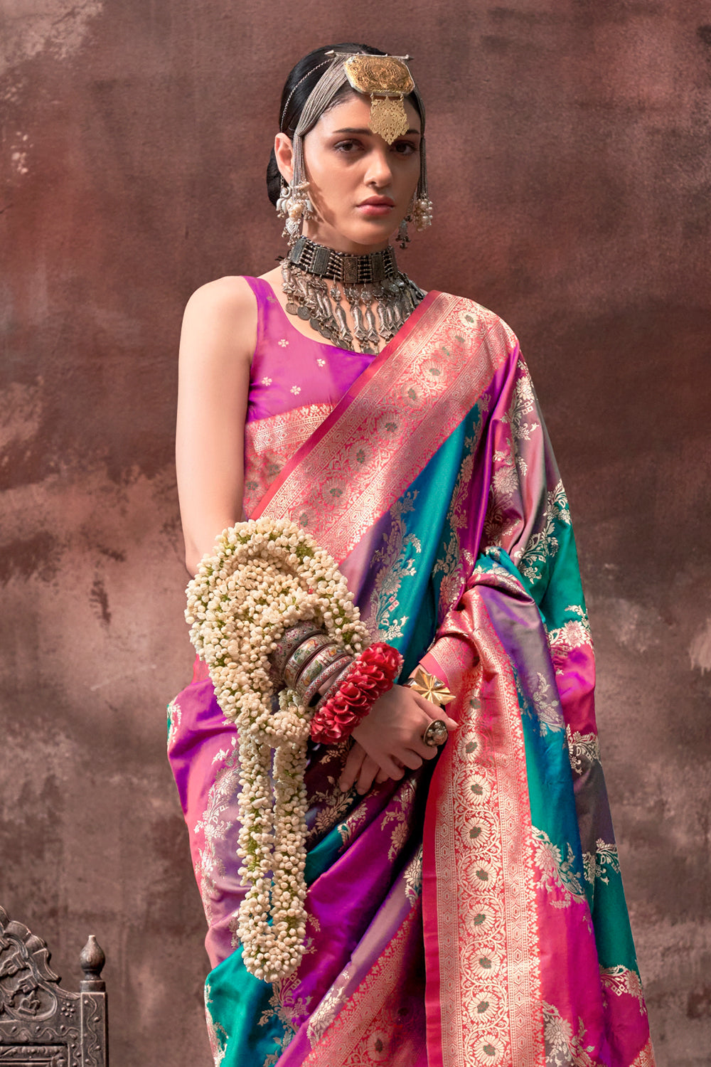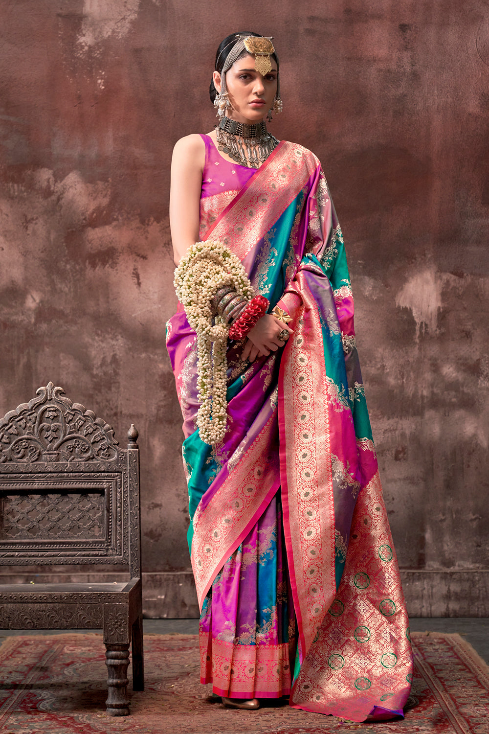 Multicolor Rangkaat Woven Saree With Pink Blouse