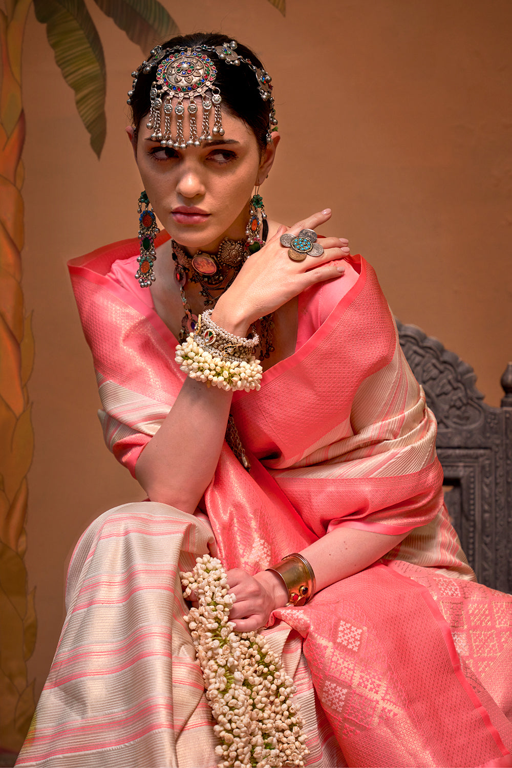 As an expert in the textile industry, i present to you a multicolor striped woven saree with a pink blouse. Made from high-quality materials, this saree adds a touch of elegance to your wardrobe. The vibrant colors and intricate patterns are sure to capture attention and make you stand out in any occasion.