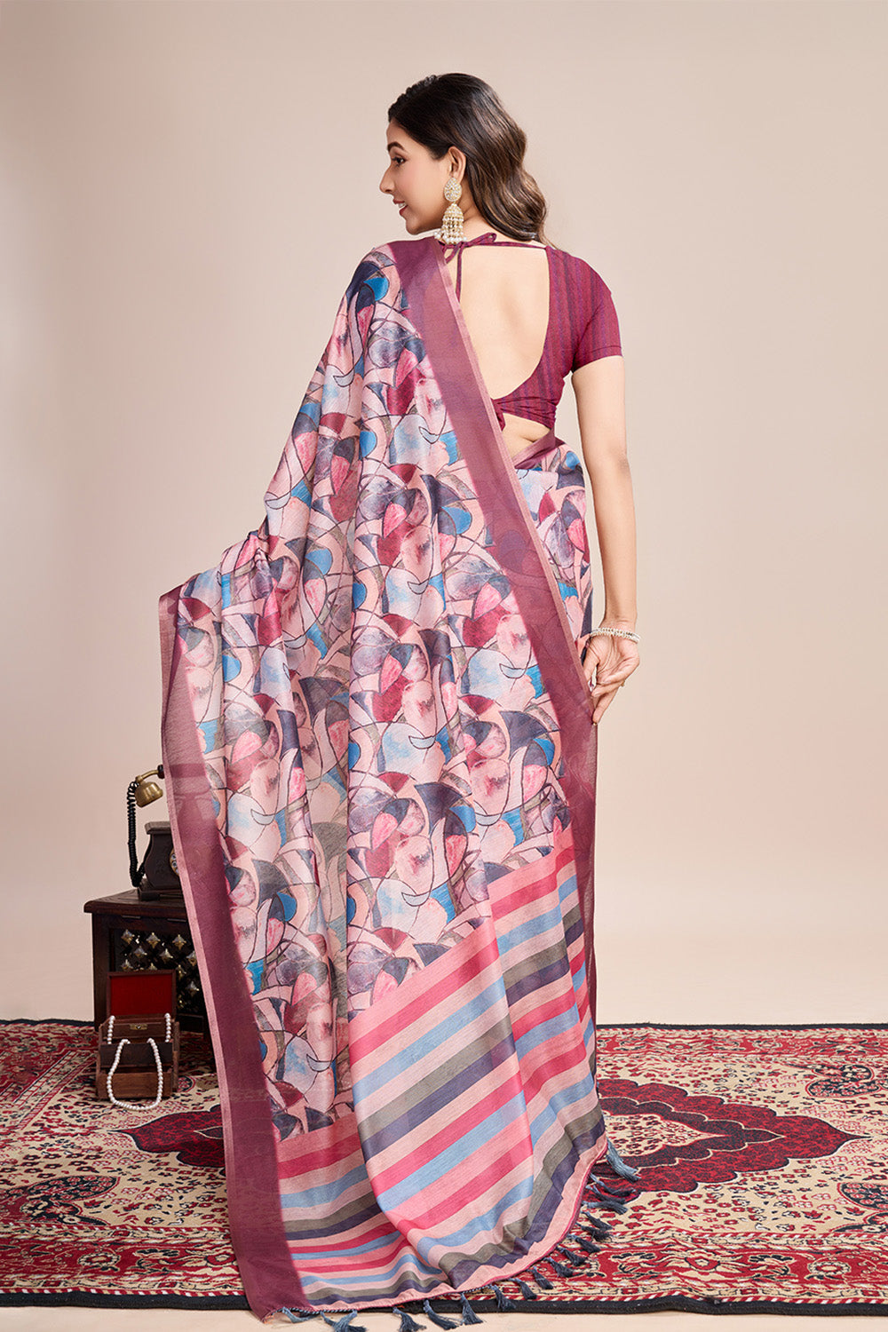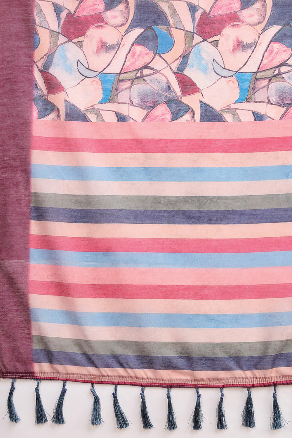 This stunning multicolor printed saree features a beautiful zari border and comes with a matching blouse. The intricate print and elegant border add a touch of traditional charm to this saree, making it perfect for any occasion. Made with high-quality materials, this saree is both comfortable and stylish, making it a must-have for any wardrobe.