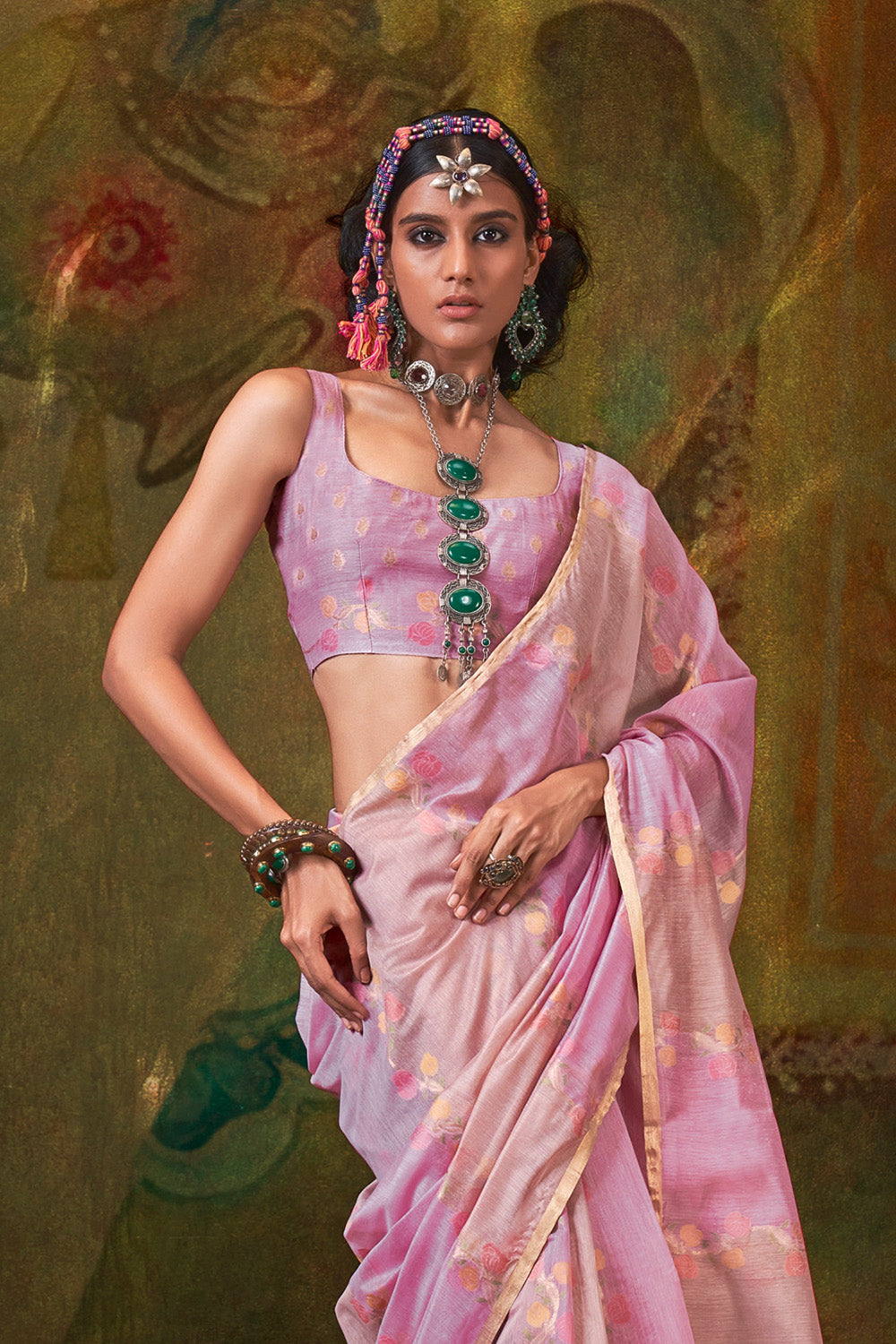 Pink Beige Rangkaat Saree With Heavy Pallu And Blouse