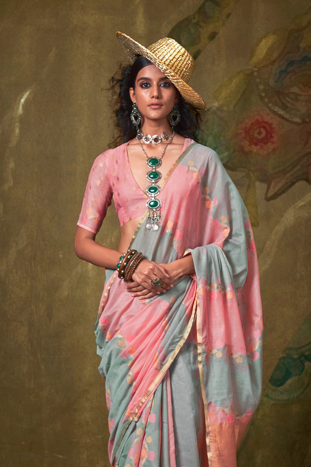 Pink Grey Rangkaat Saree With Heavy Pallu And Blouse