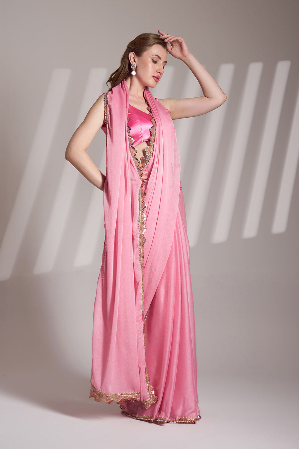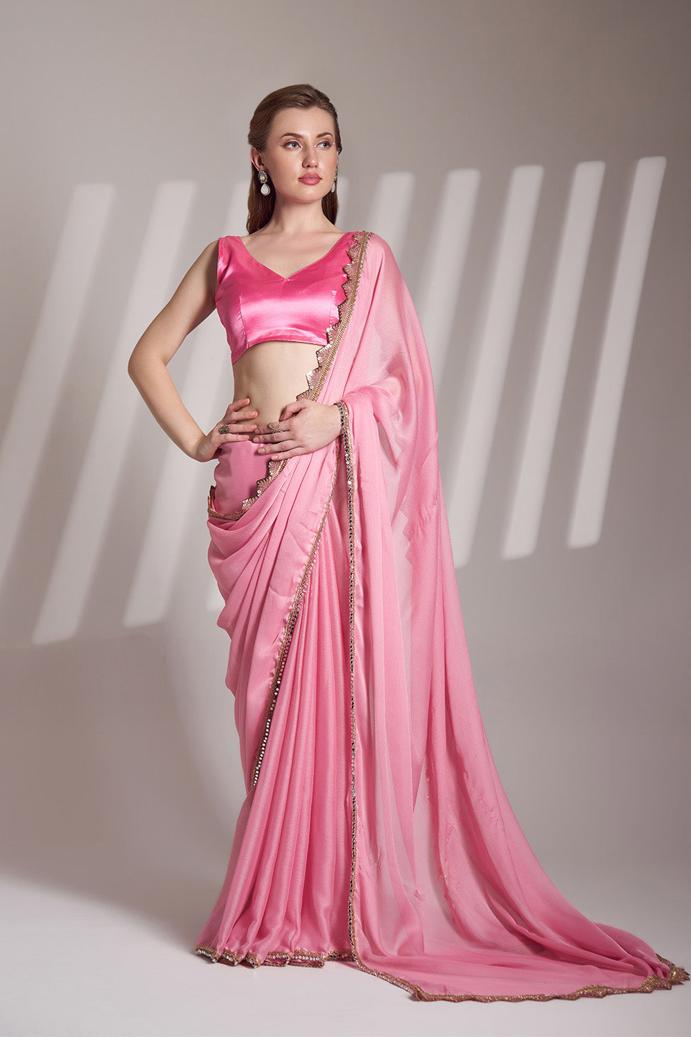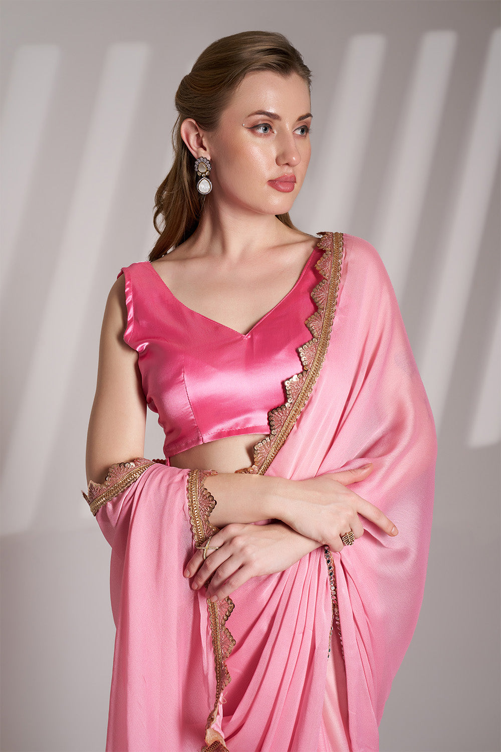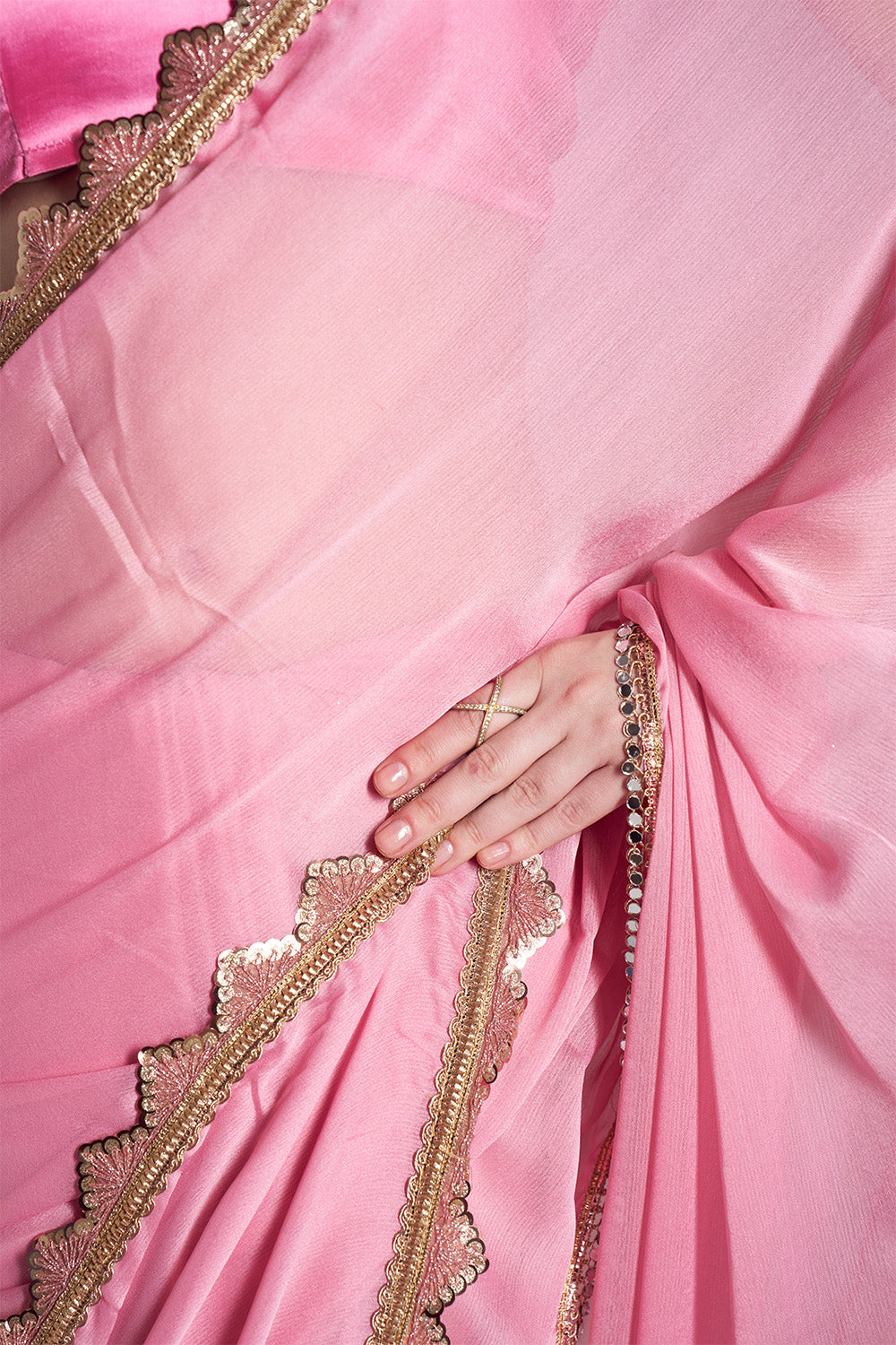Pink Chiffon Saree With Lace And Blouse
