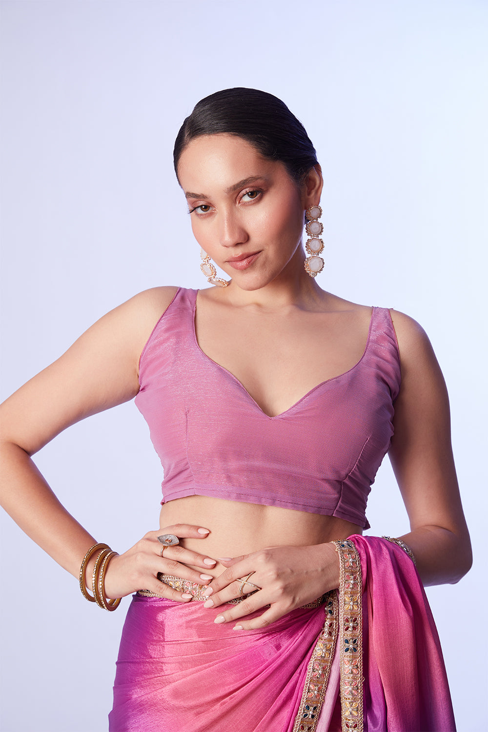 This Pink Chinon Printed Saree is a stunning addition to any wardrobe. Made from high-quality chiffon fabric, it features intricate lace details and a beautiful print. The saree comes with an unstitched blouse, allowing for a customizable fit. Elevate your style with this elegant saree.