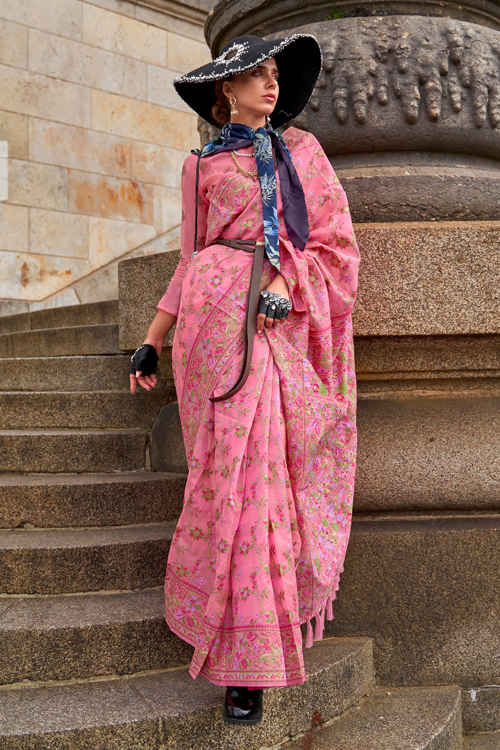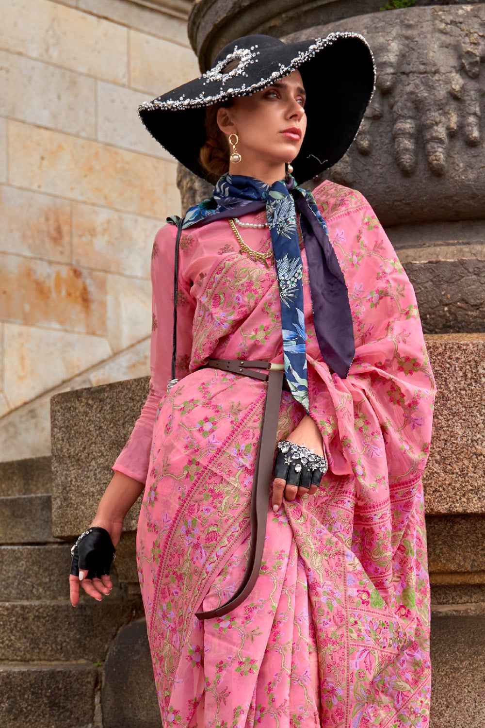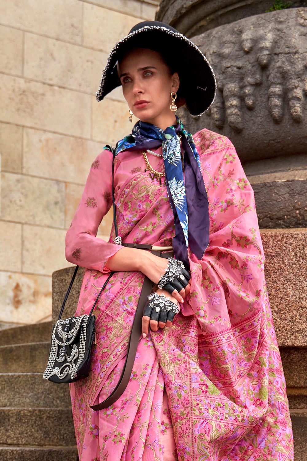Light Pink Organza Parsi Sarees With Pink Blouse