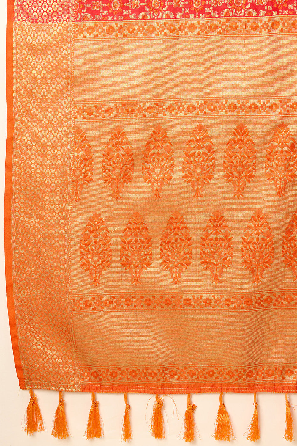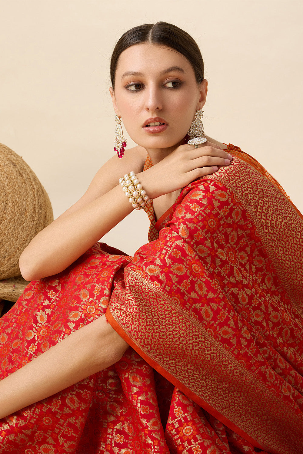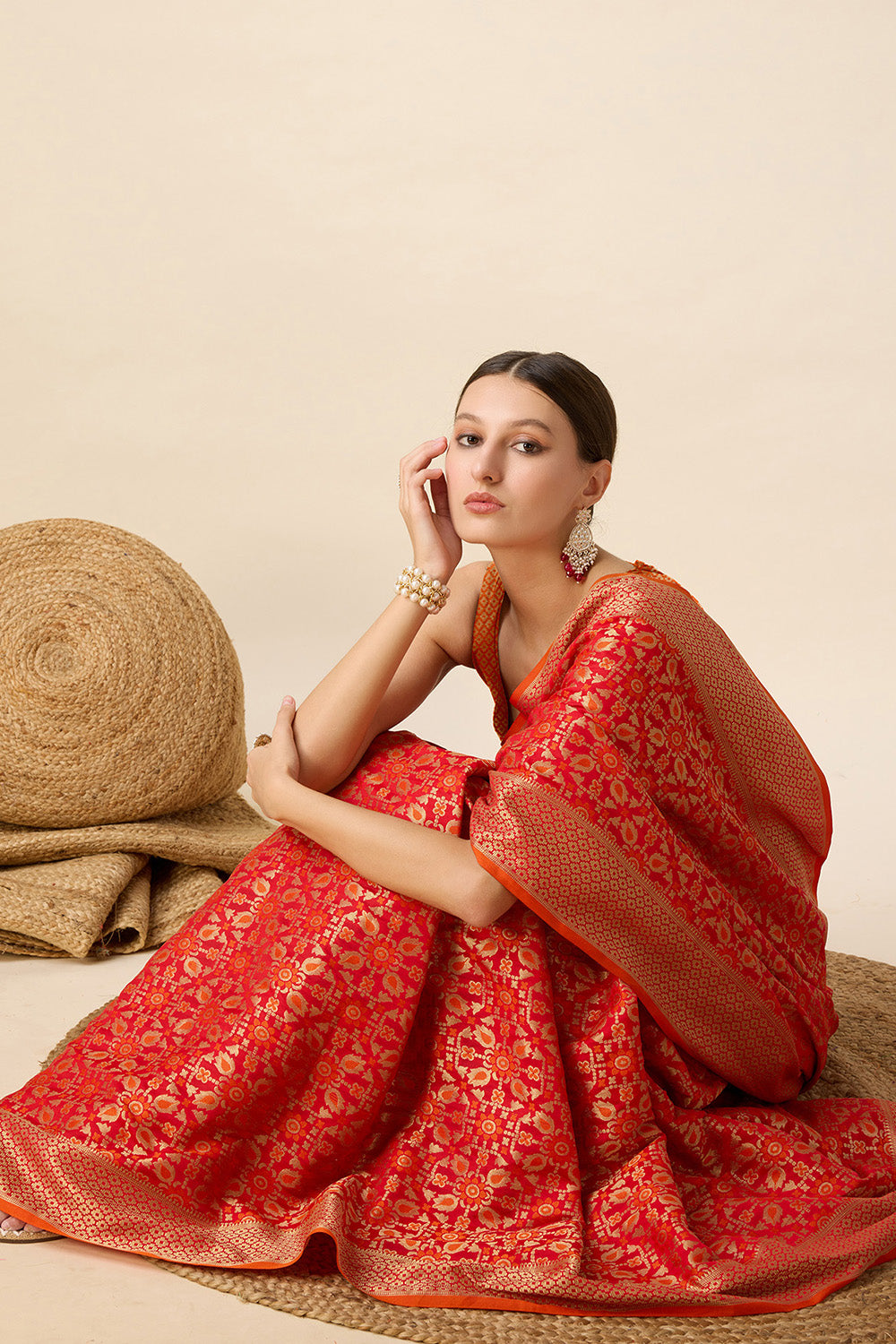This Red Patola Saree is handwoven with intricate tassels, adding a touch of elegance and sophistication to any occasion. Made from high-quality materials, it offers comfort and durability. Perfect for weddings, festivals, and formal events, this saree is a must-have in any wardrobe.