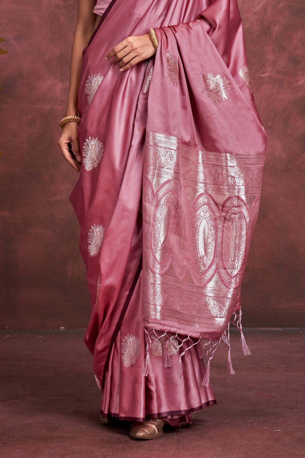 Pink Tone Banarasi Saree Zari Pallu And Blouse
