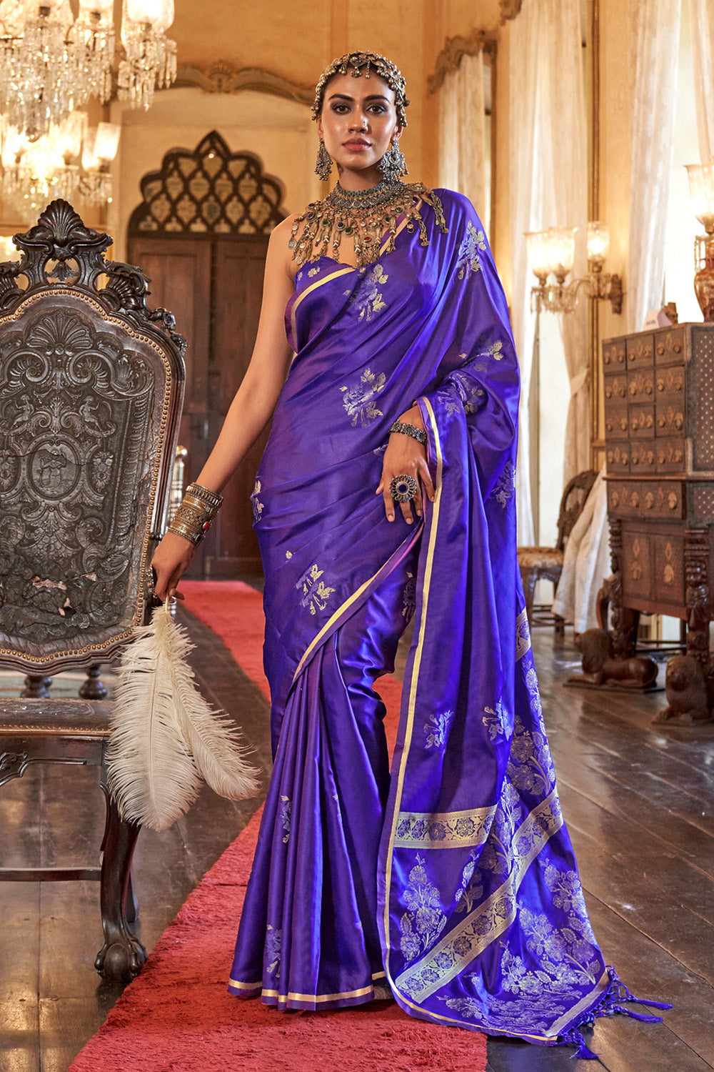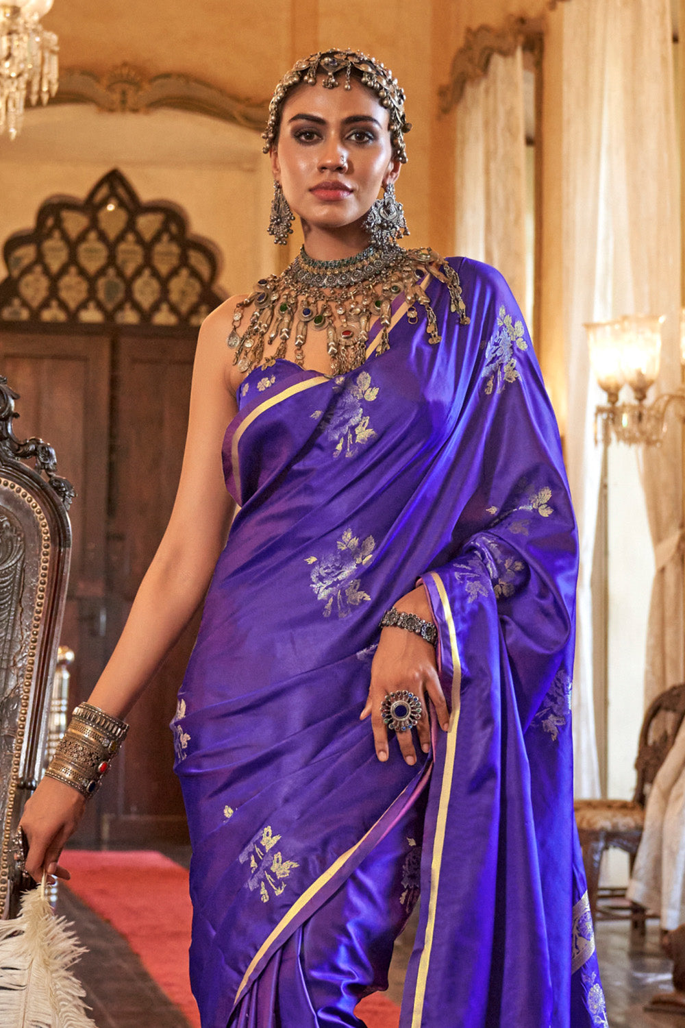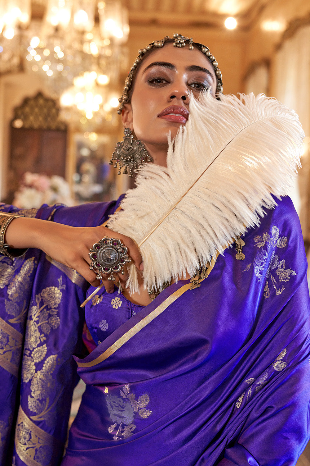 Expertly crafted and designed for elegance, our Purple Satin Weave Saree comes with a stunning Brocade Blouse. The luxurious satin fabric and intricate brocade design make for a beautiful combination, perfect for any occasion. Elevate your style with this exquisite purple saree and its matching blouse.