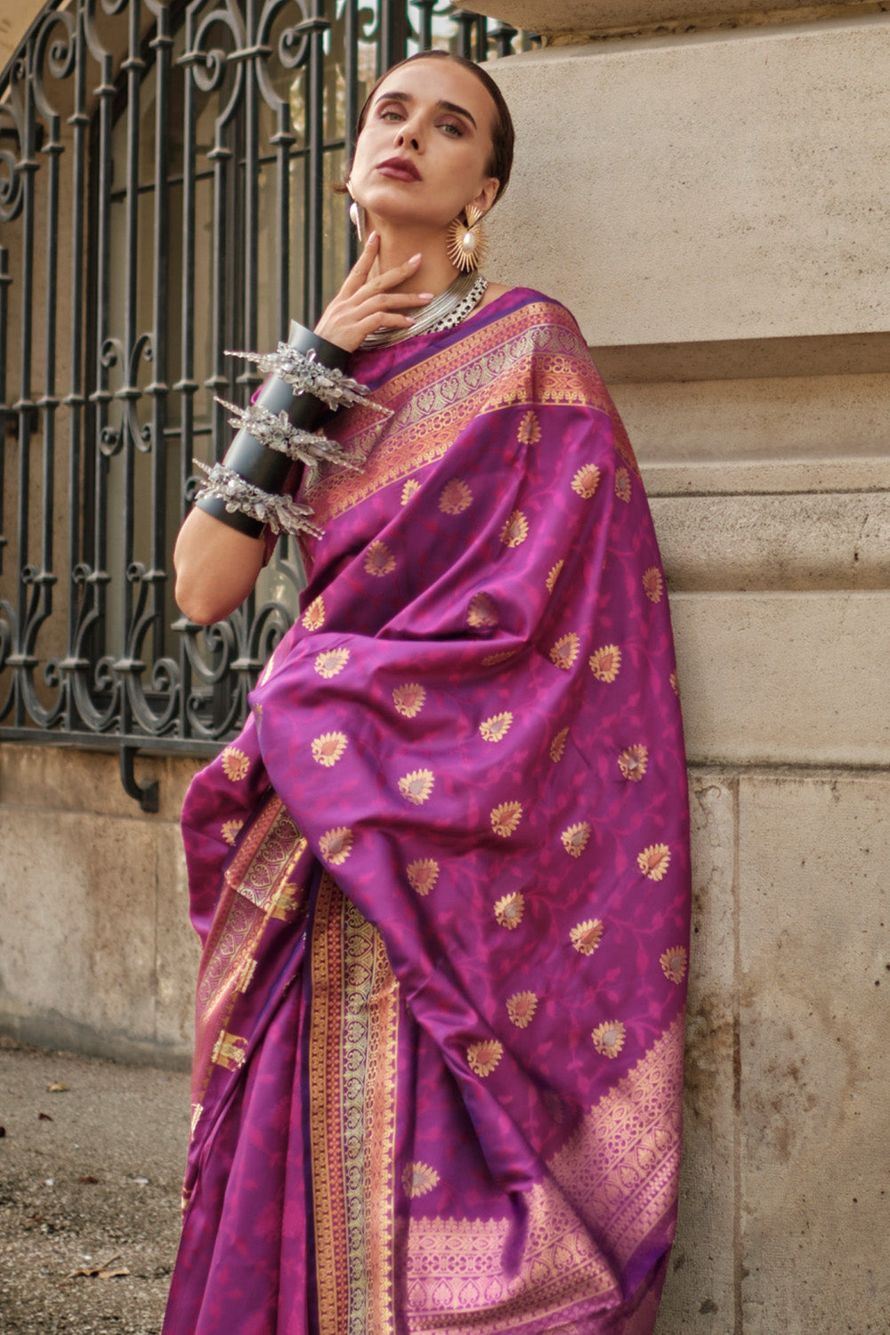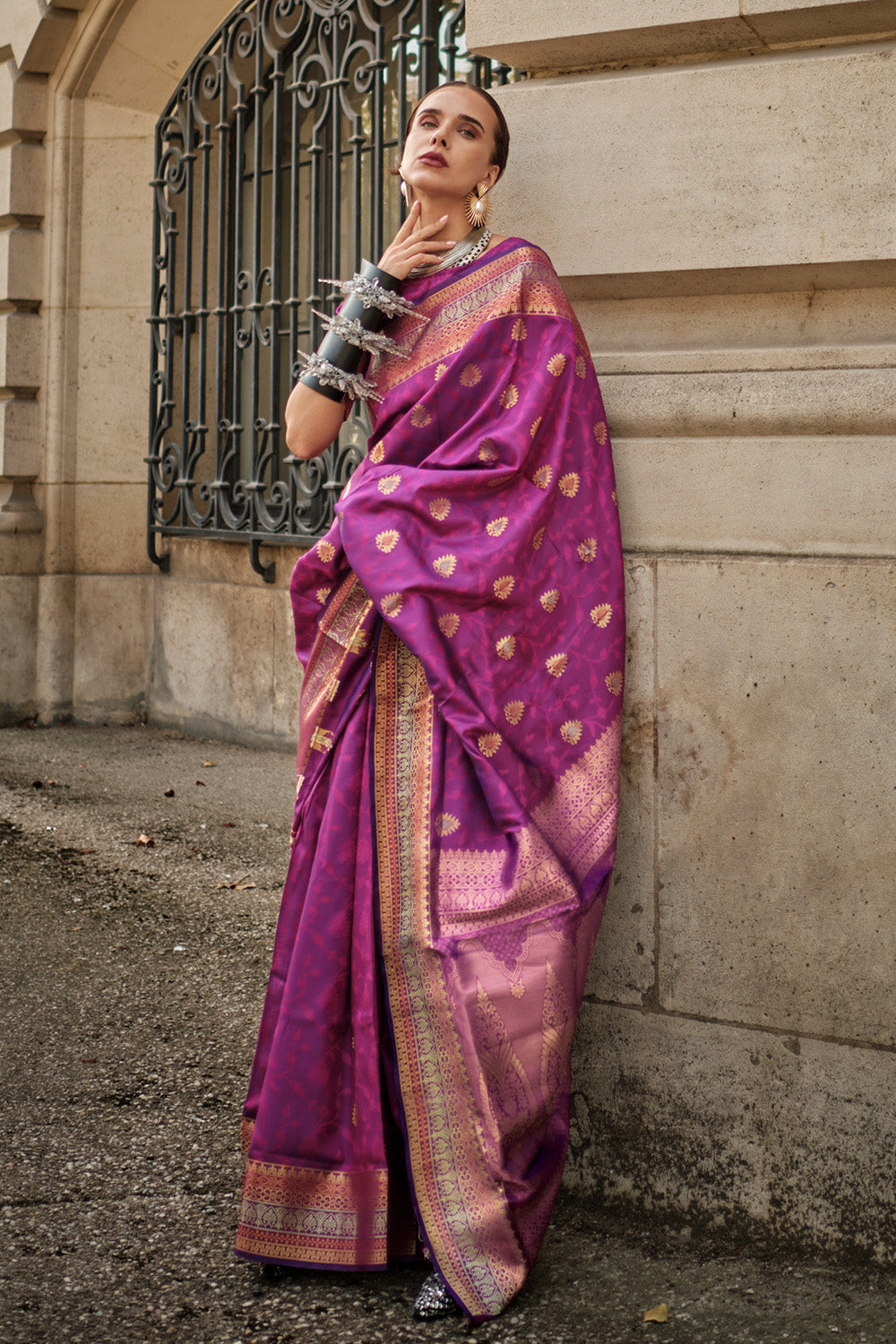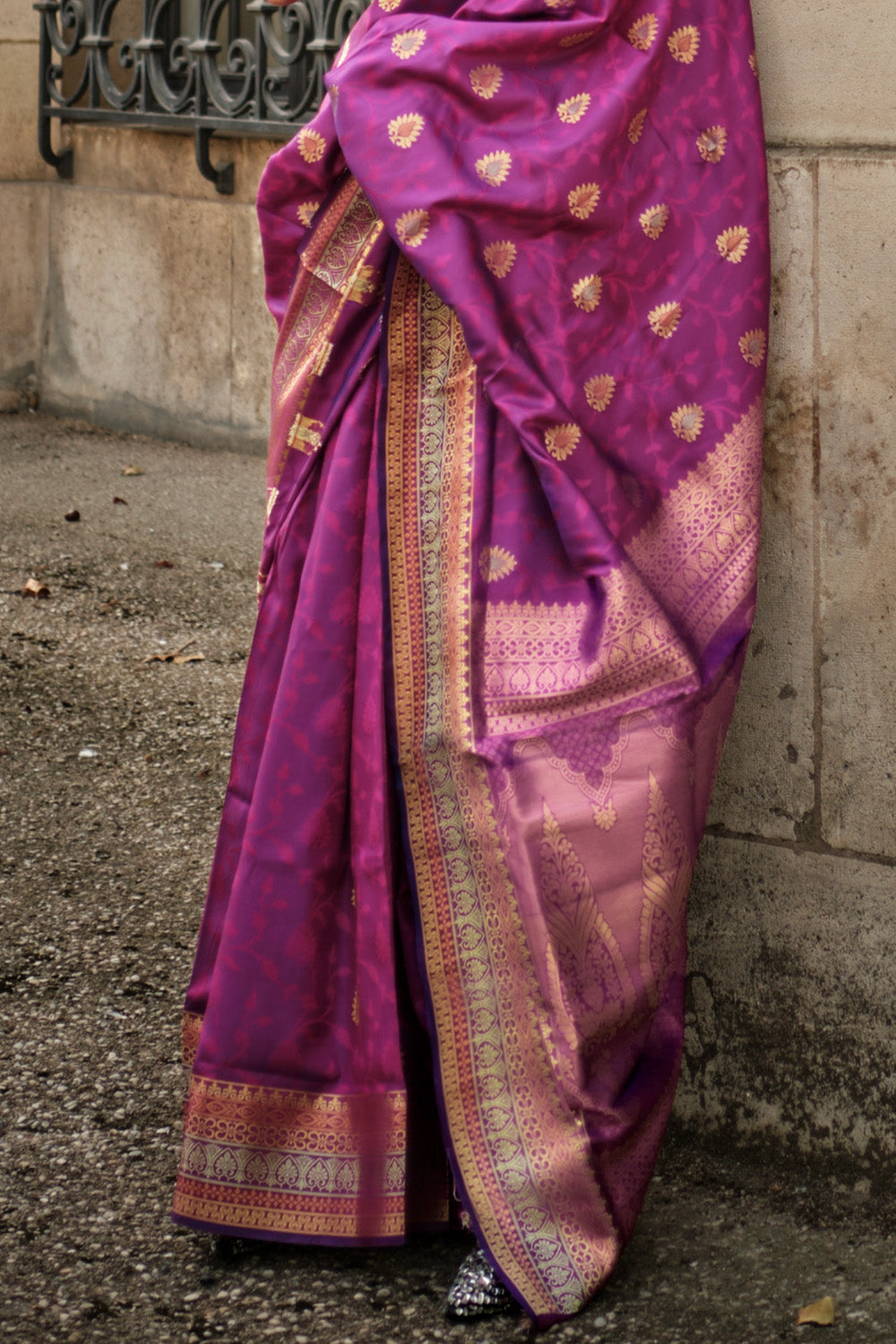 Expertly crafted from soft artsilk fabric, this purple saree features a contrasting pallu for a stunning look. Comes with a versatile blouse piece for endless styling options. Elevate your wardrobe with this elegant and comfortable addition.