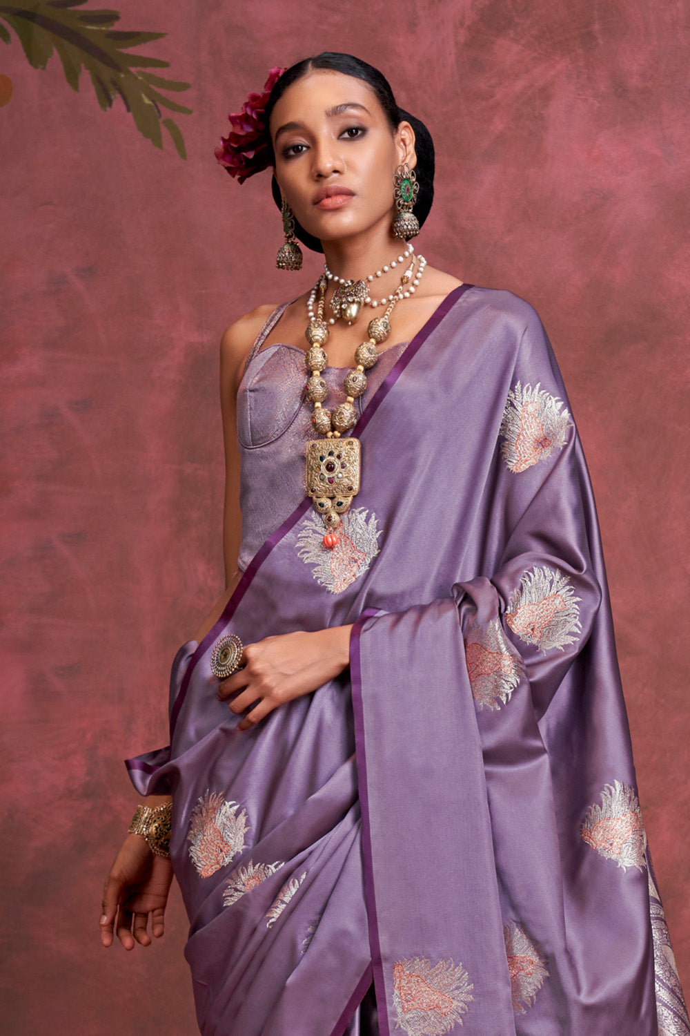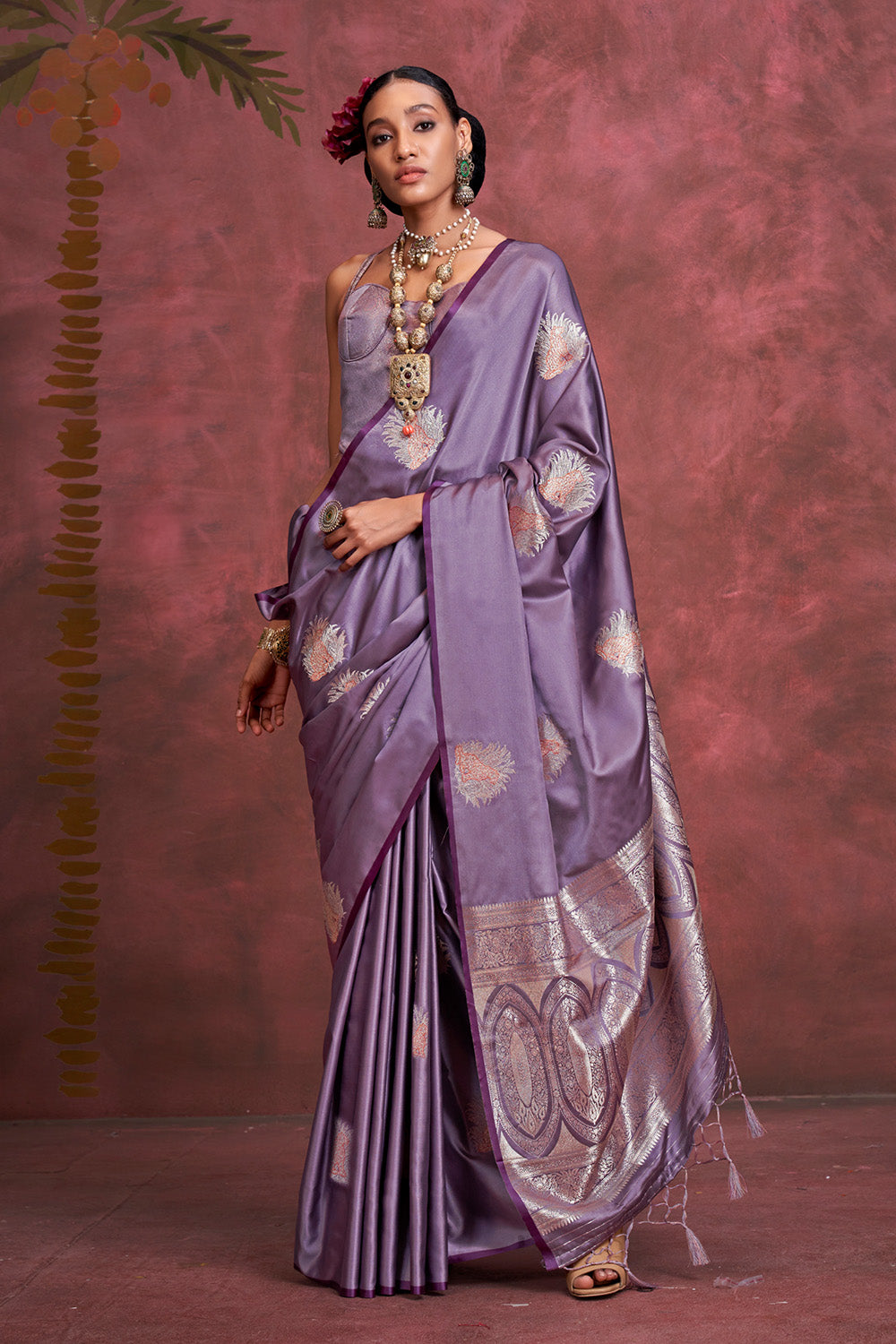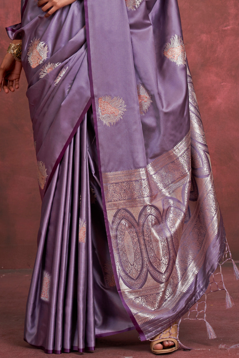 Purple Tone Banarasi Saree Zari Pallu And Blouse