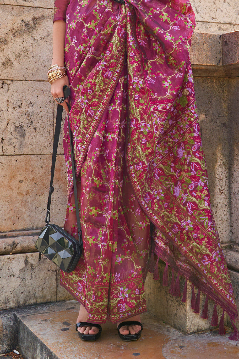 These red organza parsi sarees with red blouse are the perfect combination of style and tradition. Made from high-quality organza fabric, they provide a luxurious and elegant look. The vibrant red color adds a touch of glamour, making you stand out in any event. Ready to impress?.