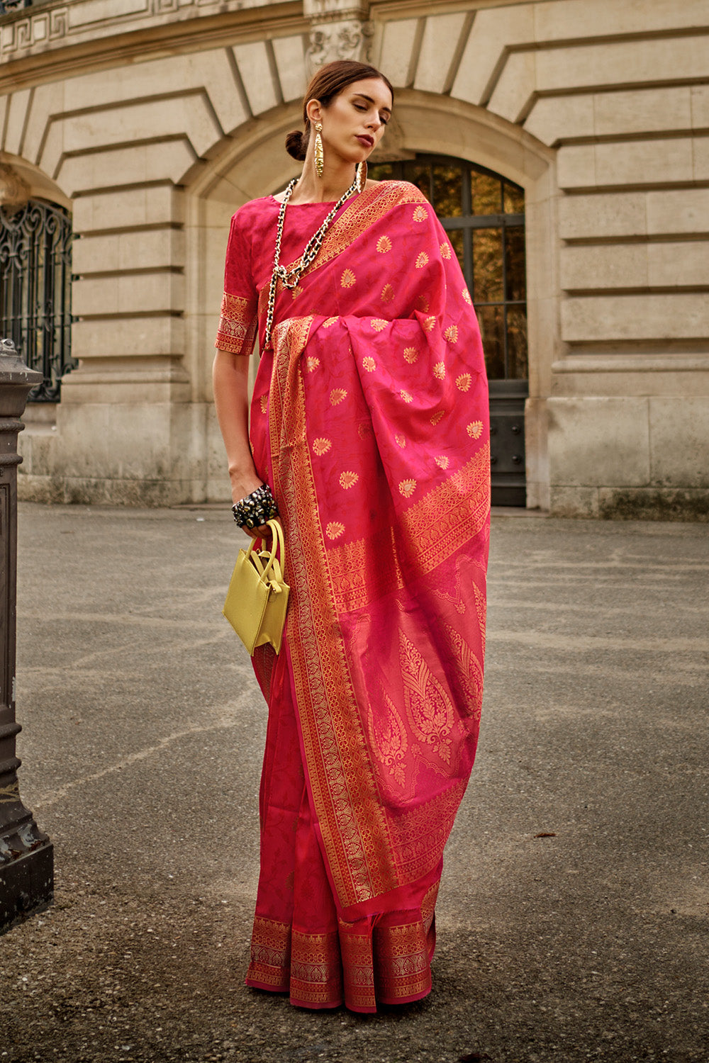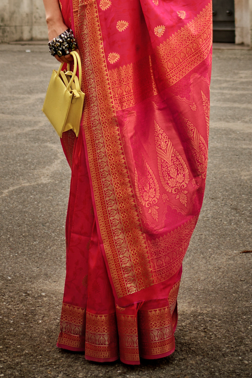 This red soft artsilk saree features a contrast pallu and comes with a matching blouse. The smooth texture of the saree is comfortable to wear and the contrasting pallu adds a touch of elegance. Perfect for any occasion, this saree is a must-have in your collection.