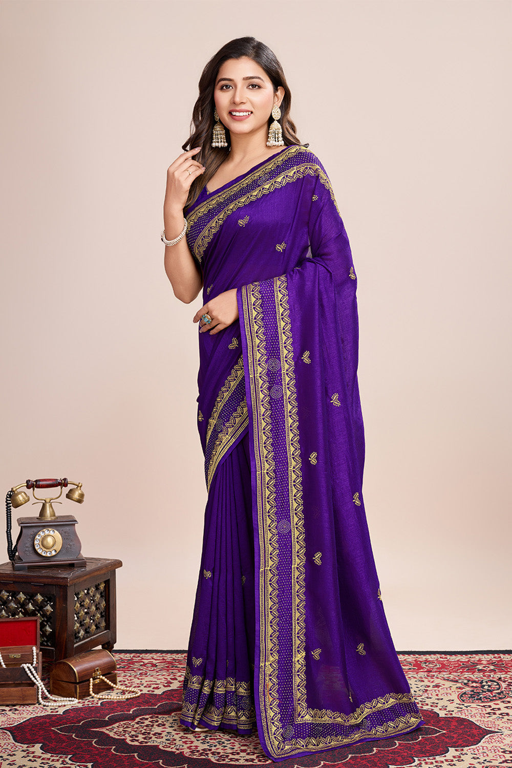Expertly crafted with soft pastel colors and delicate floral embroidery, our Wine Saree is the perfect addition to your wardrobe. Made from high-quality materials, it offers comfort and style for any occasion. Elevate your look with this elegant and timeless piece.
