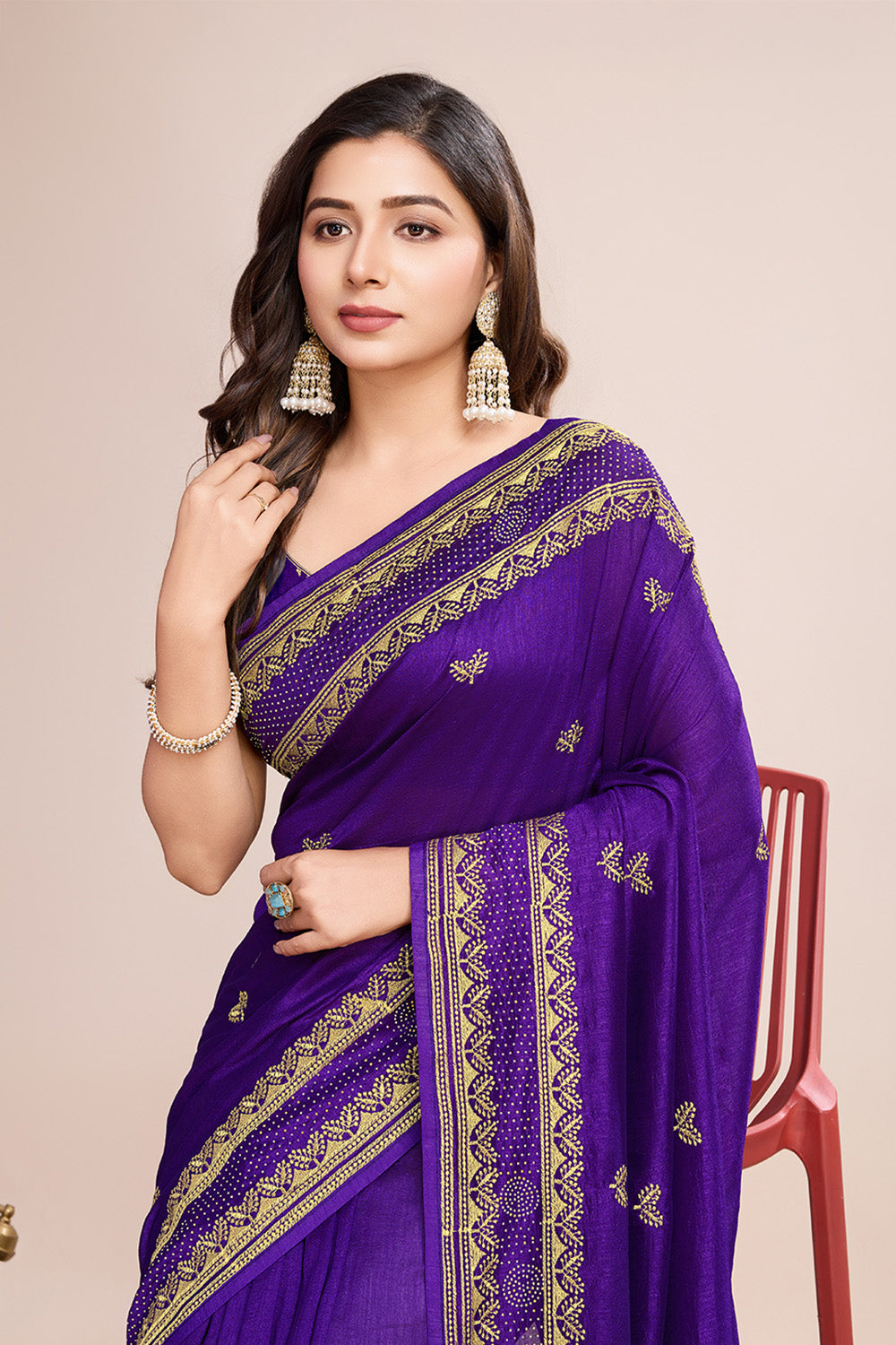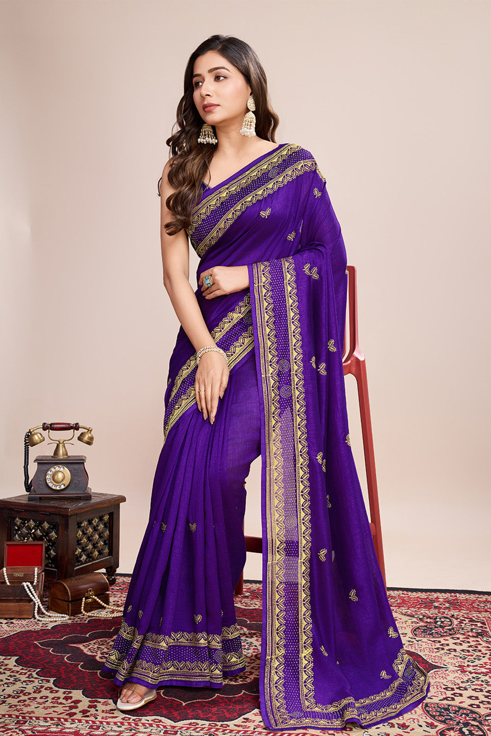 Wine Saree In Soft Pastel Color With Floral Embroidery