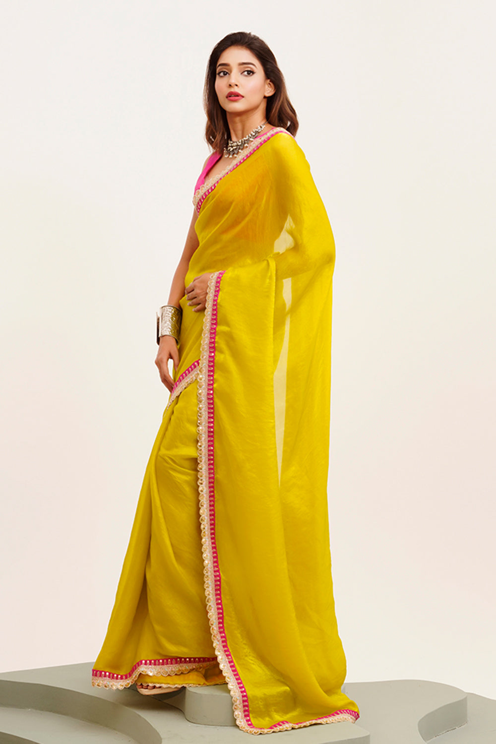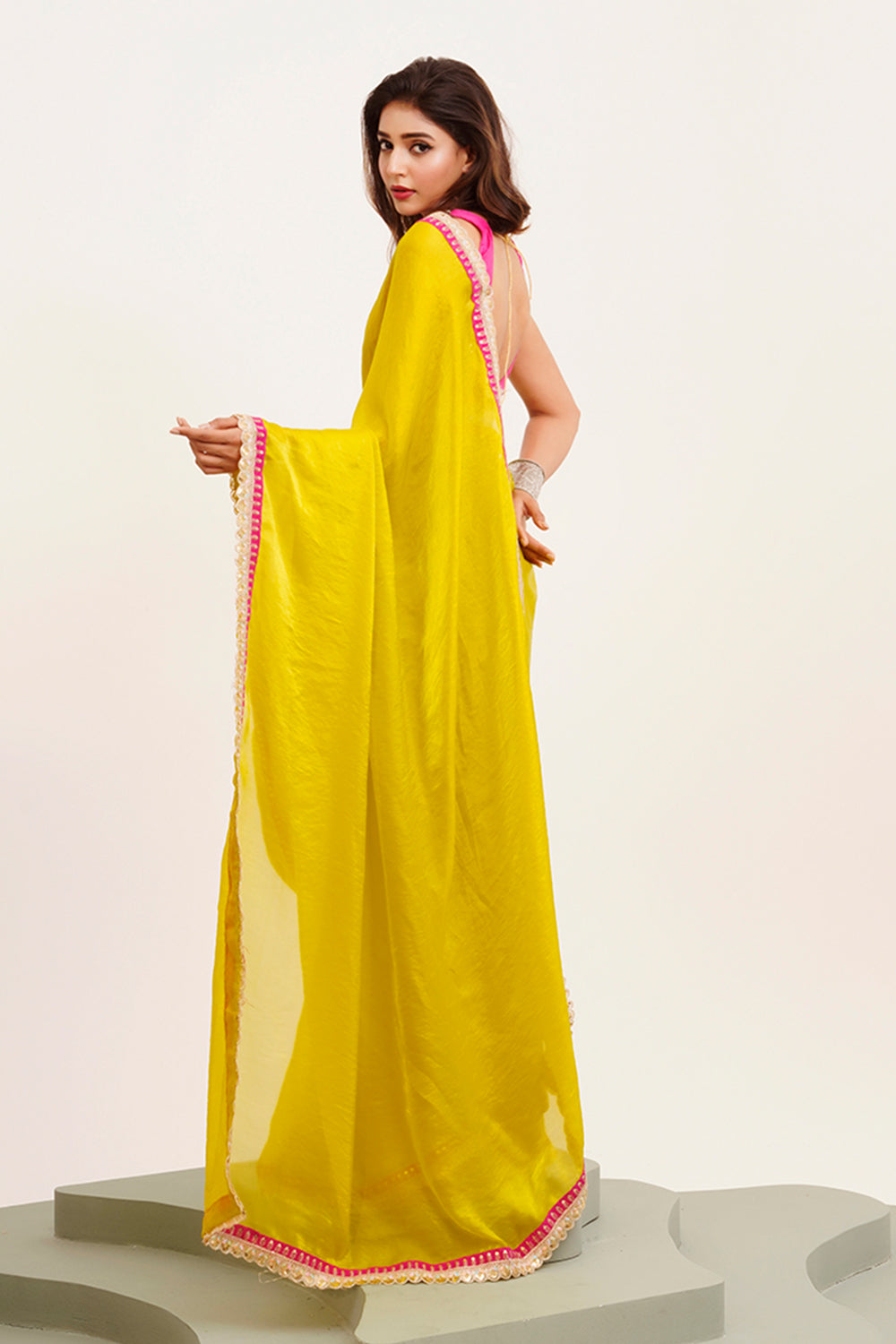Elevate your traditional wardrobe with this exquisite Yellow Satin Saree adorned with delicate beads and stones. The smooth satin fabric offers a luxurious drape, while the intricate embellishments add a refined sparkle, perfect for festive occasions or formal events. Included with a matching blouse, this saree combines elegance and comfort, ensuring a graceful silhouette and a polished look. Ideal for those who appreciate craftsmanship and timeless style.